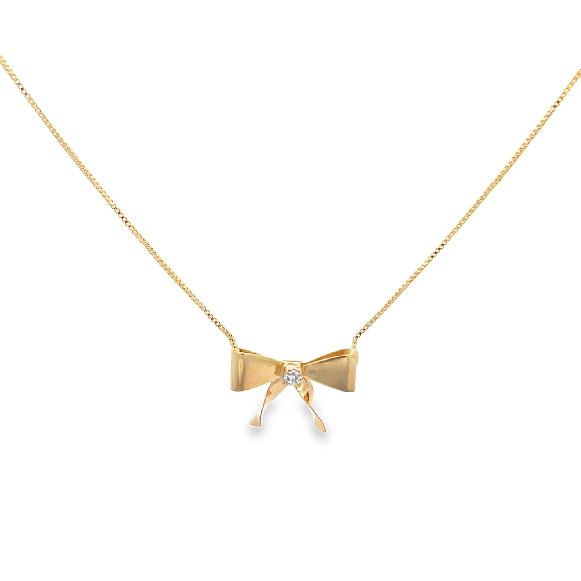 Add a touch of elegance to any outfit with our 1mm Box Chain adorned with a dazzling CZ Bowtie Charm. Perfect for any occasion, this piece exudes sophistication and luxury. Elevate your jewelry collection with this unique and stylish design.