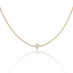 Elevate your jewelry collection with our 2mm Tennis Diamond Shape Stone Charm Choker. Crafted with sophistication, this necklace features dainty 2mm diamonds and a beautiful diamond-shaped pendant. Perfect for adding a touch of luxury and elegance to any outfit.