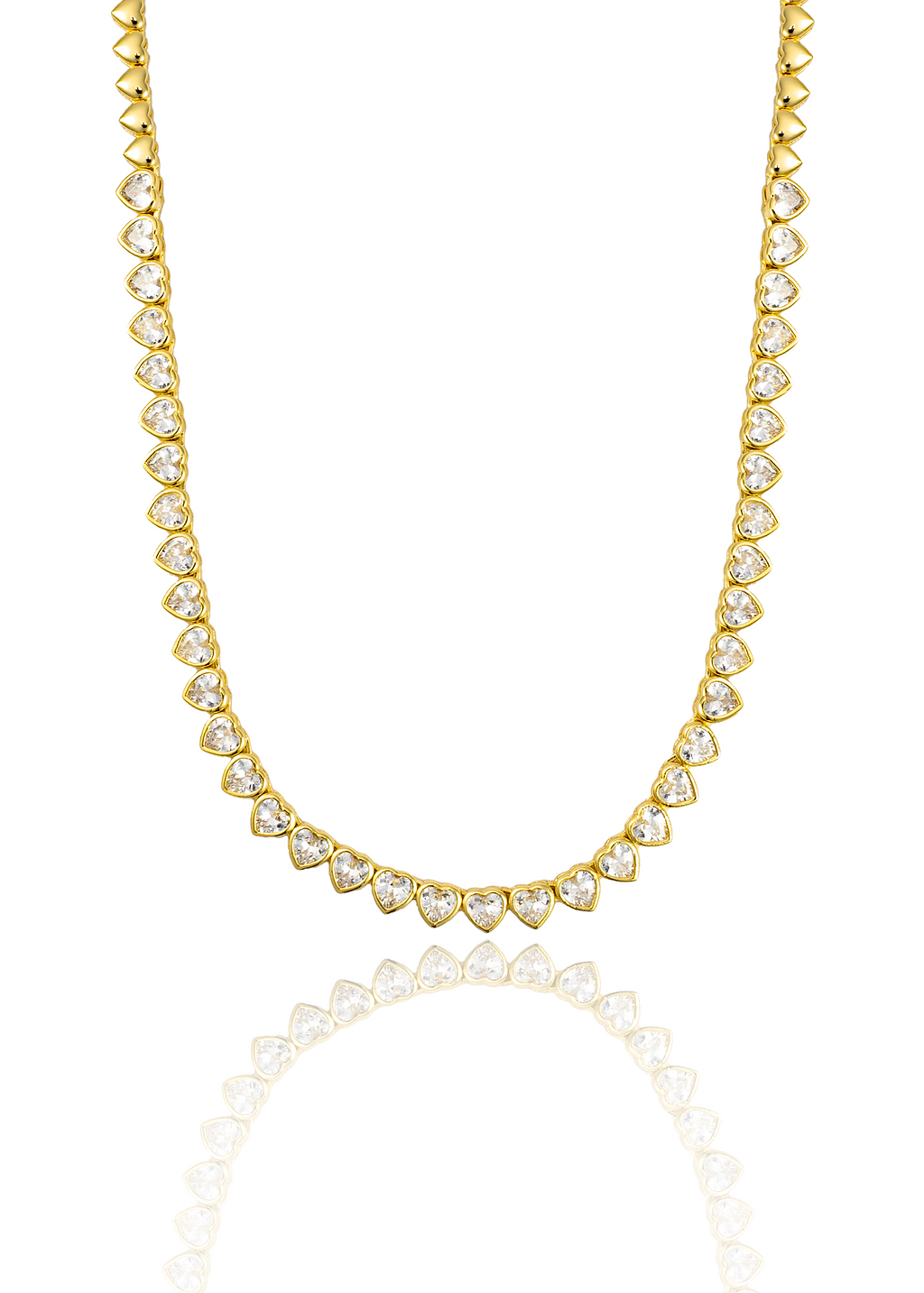 5mm Heart Bezel and Plain Heart Tennis Necklace / Bracelet