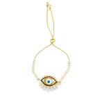 Adjustable Box Chain Bracelet With MutliColor and Clear CZ Stones On A Evil Eye Charm (I141)