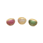 Indulge in luxury with our Colored CZ Paved Thin Dome Ring. This exquisite piece features sparkling CZ stones intricately set in a domed design, creating a timeless and sophisticated look. Elevate any outfit with this exclusive and tasteful ring.