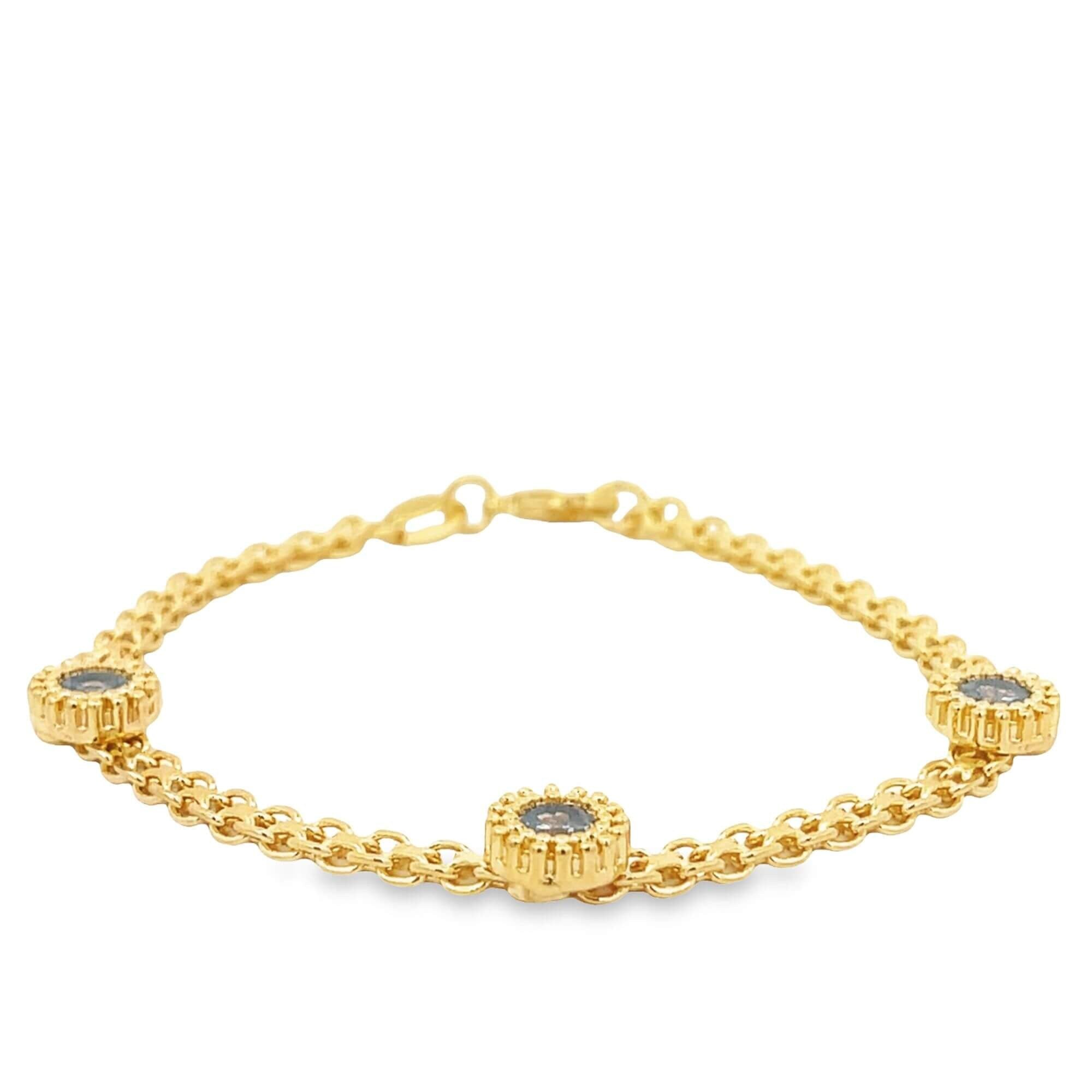 Curb Chain Bracelet with 3 CZ Stones (I574)