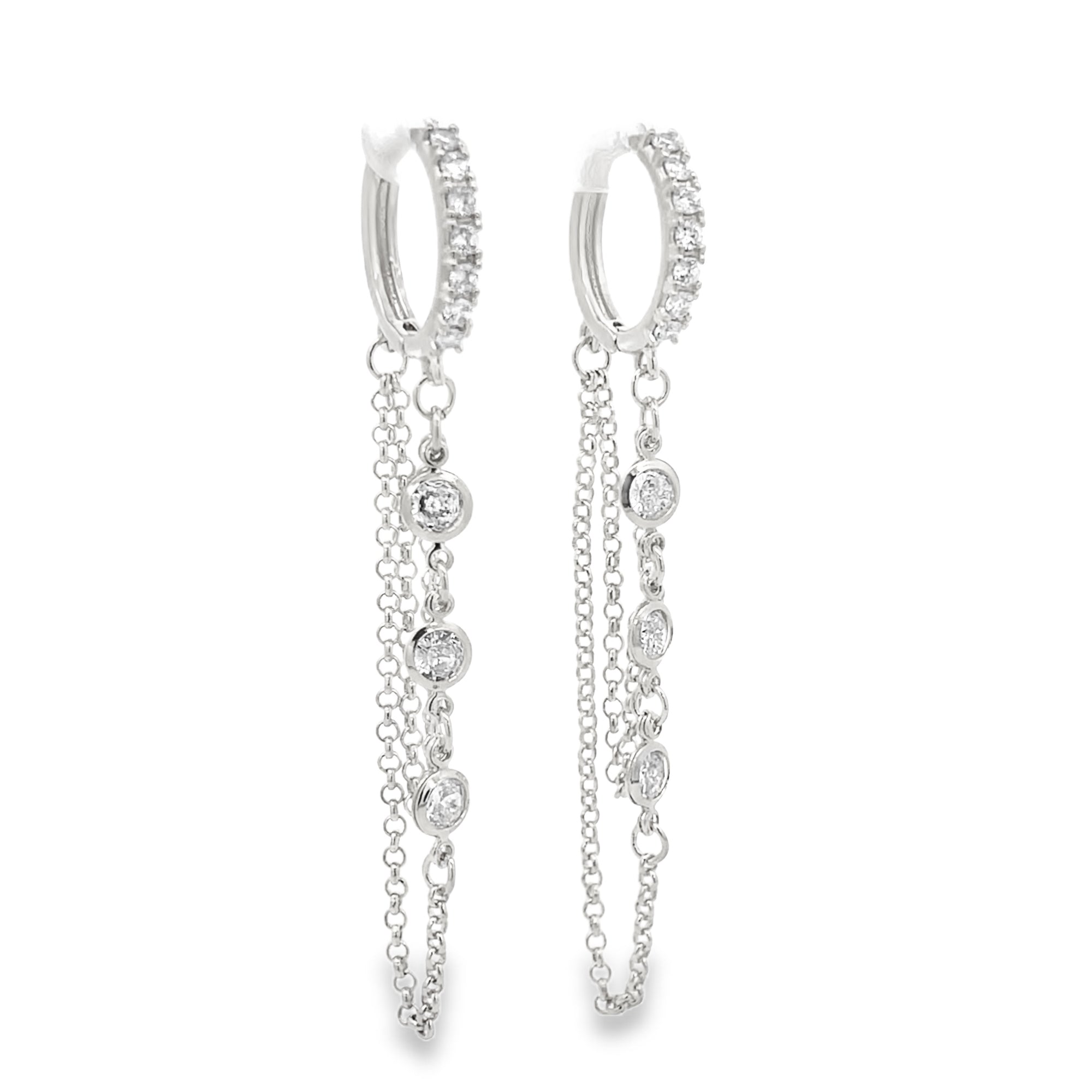 CZ Dangle Rolo Link Chain Earrings (J190)