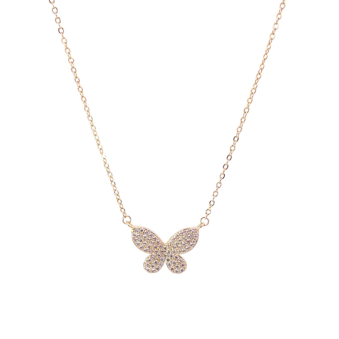 Dainty Rolo Chain CZ Pave Butterfly Pendant Necklace (H182)