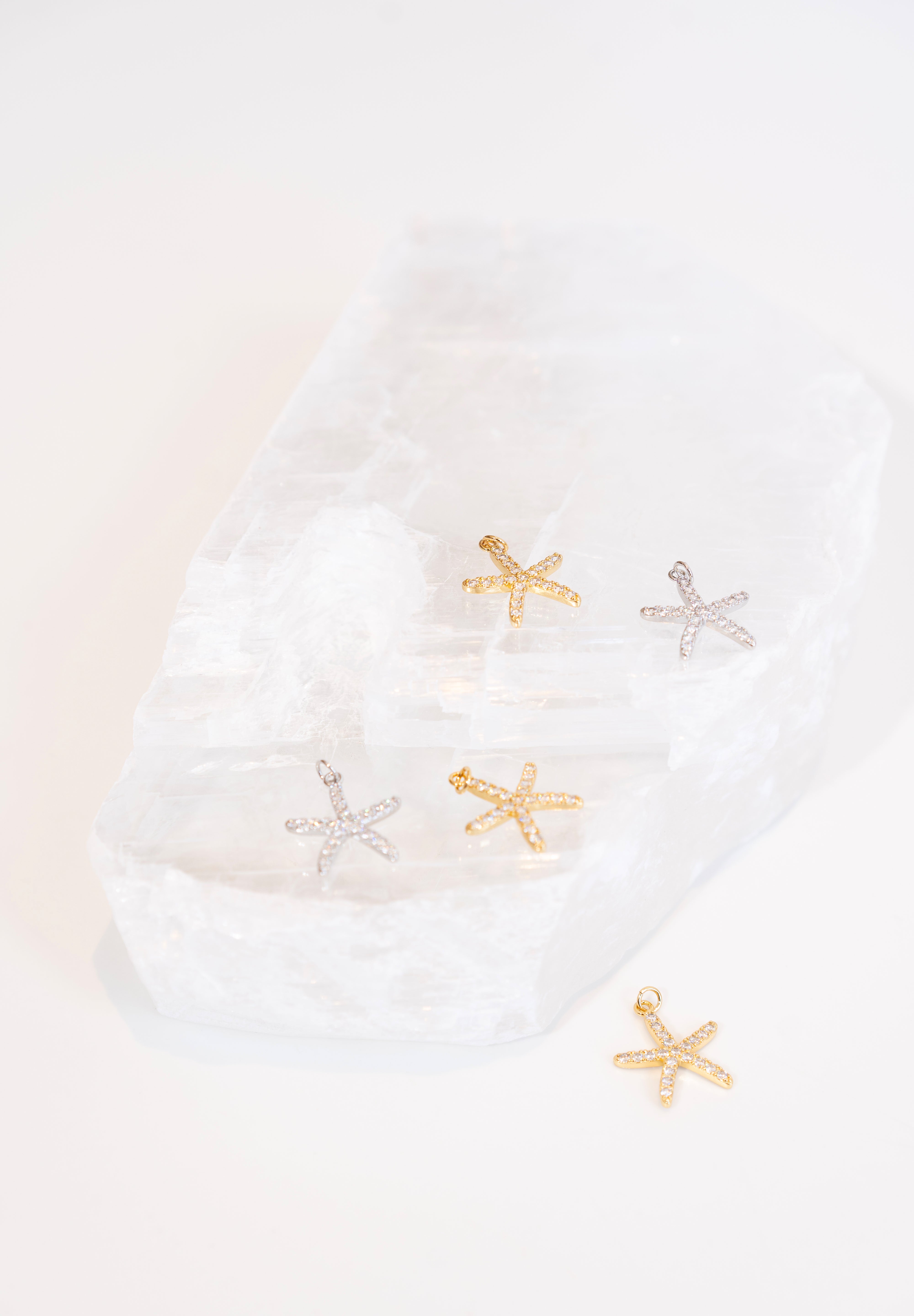 Shimmer and shine like the ocean's star with our CZ Pave Starfish Pendant. This exquisite pendant is adorned with sparkling cubic zirconia, creating a luxurious and tasteful accessory for any occasion. Embrace elegance with this stunning starfish pendant.