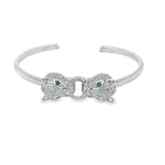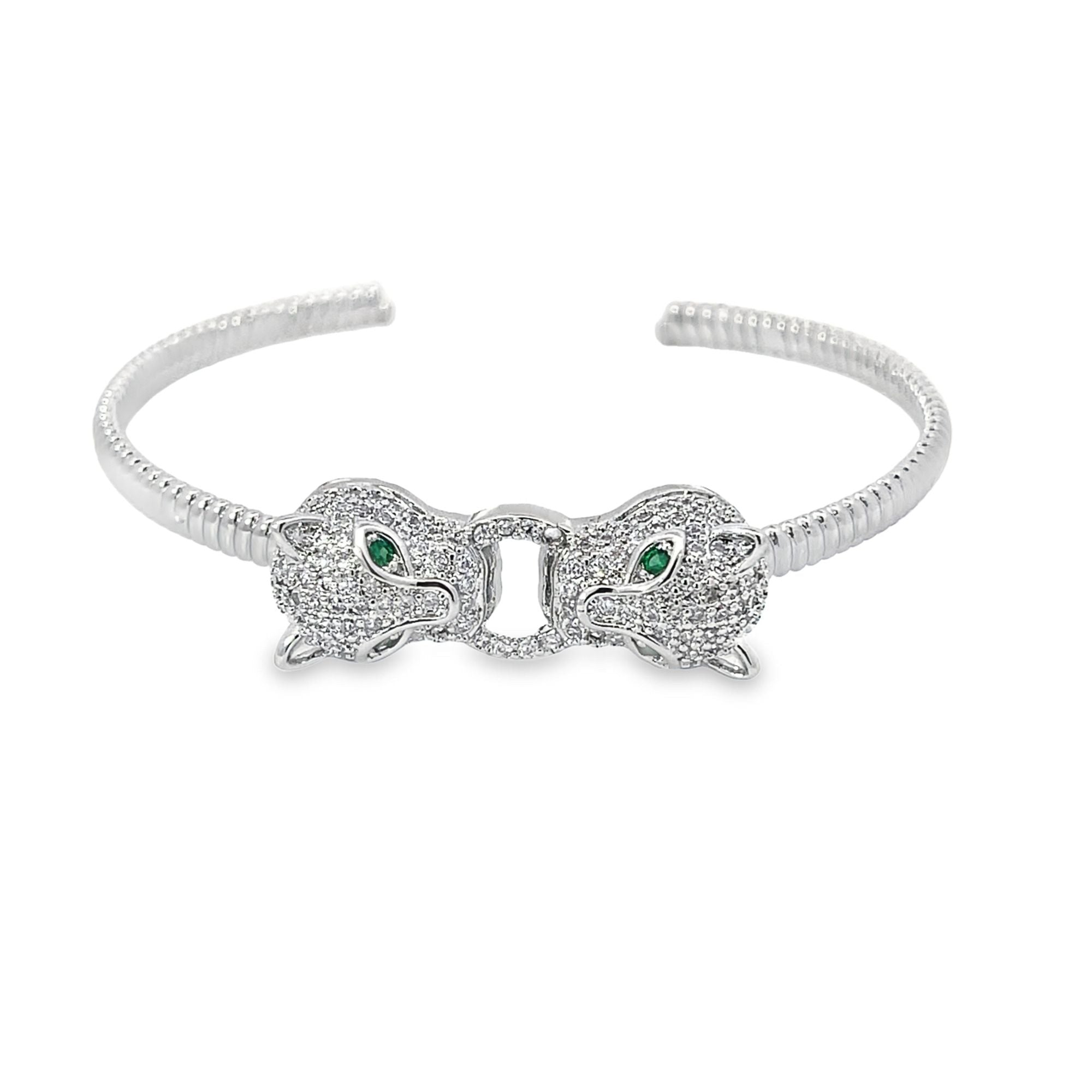 CZ Paved Dual Panther Heads Coil Style Bangle (B130)