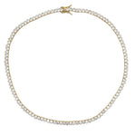 Indulge in luxury with our CZ Three Prong Buckle Clasp Tennis Necklace. Featuring a stunning three prong buckle clasp and shining CZ stones, this necklace exudes elegance and sophistication. Perfect for any occasion, elevate your style and shine with this exquisite piece.