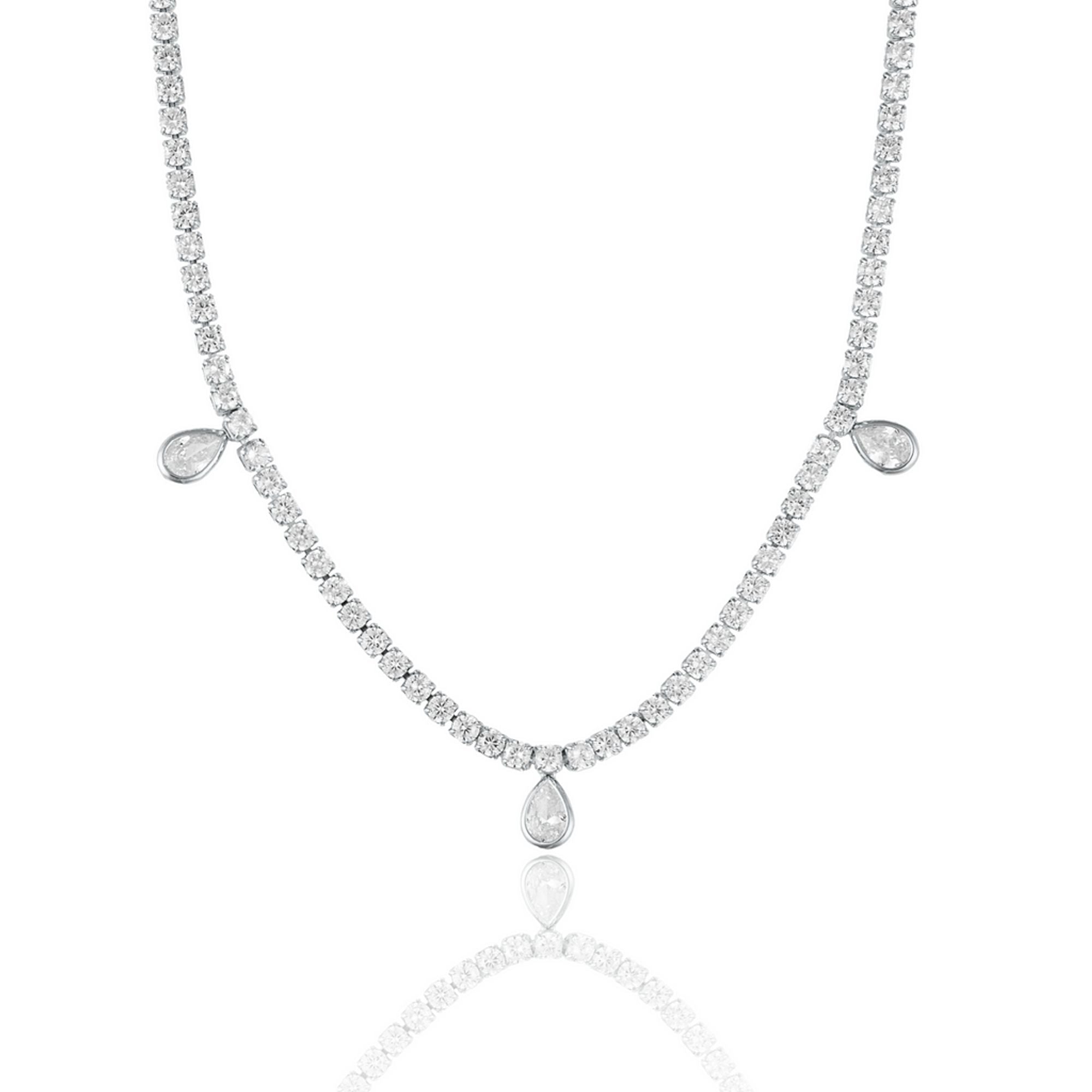 Dainty Tennis Necklace With Tear Drop CZ Stones (G180)