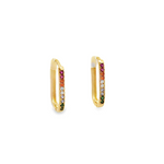 Half Multicolored CZ Paved Oval Link Latch Back Huggies (L135A)