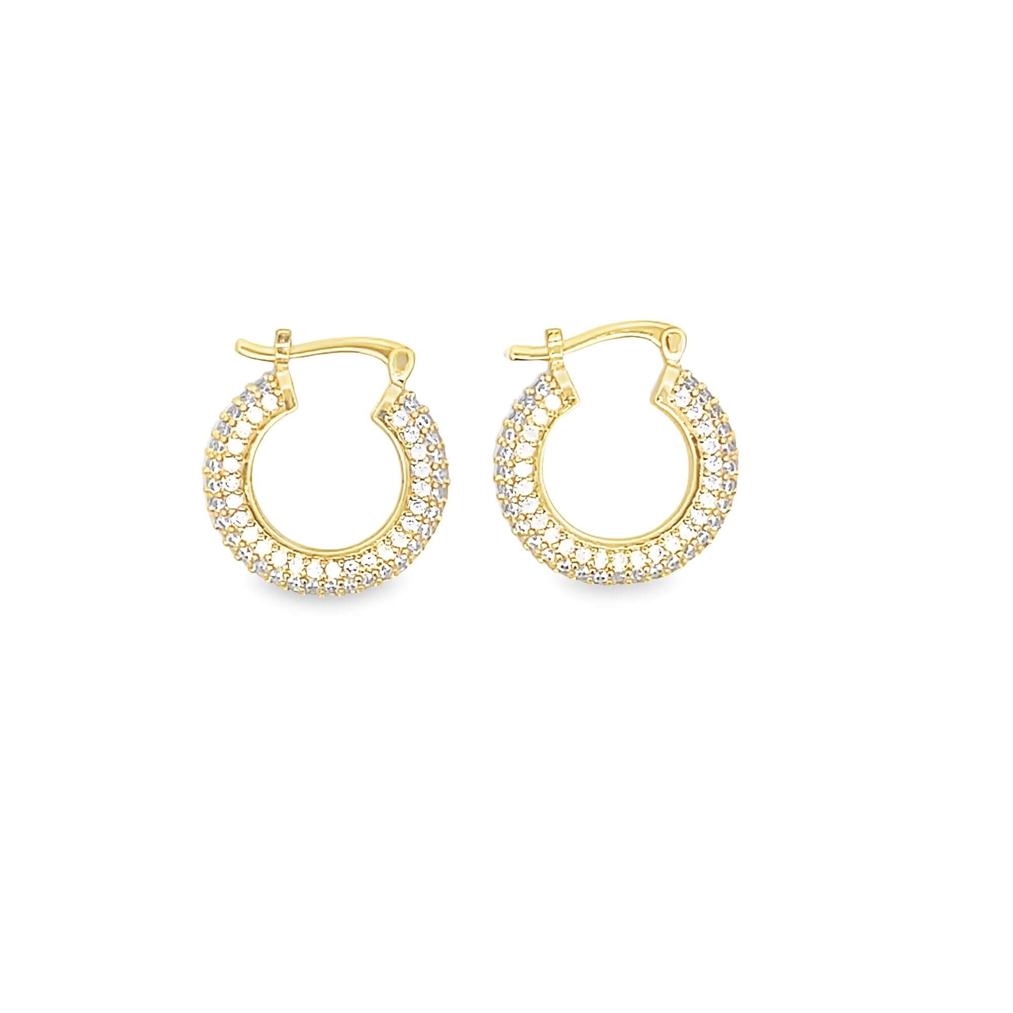 Introducing our Mini CZ Paved French Hoops, crafted with intricate CZ pave detailing for a stunning and luxurious touch. Elevate your style and make a statement with these elegant and exclusive hoops. Perfect for adding a touch of sophistication and glamour to any outfit.