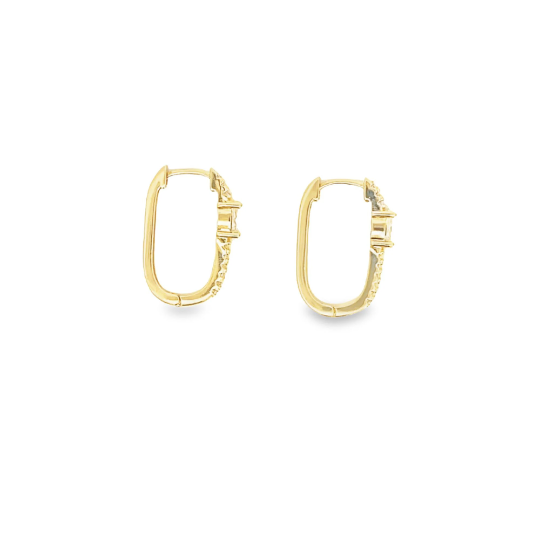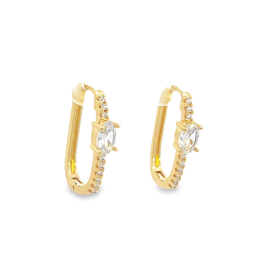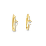 Oval Shape Half CZ Pave Stone Charm Slim Thin Hoops