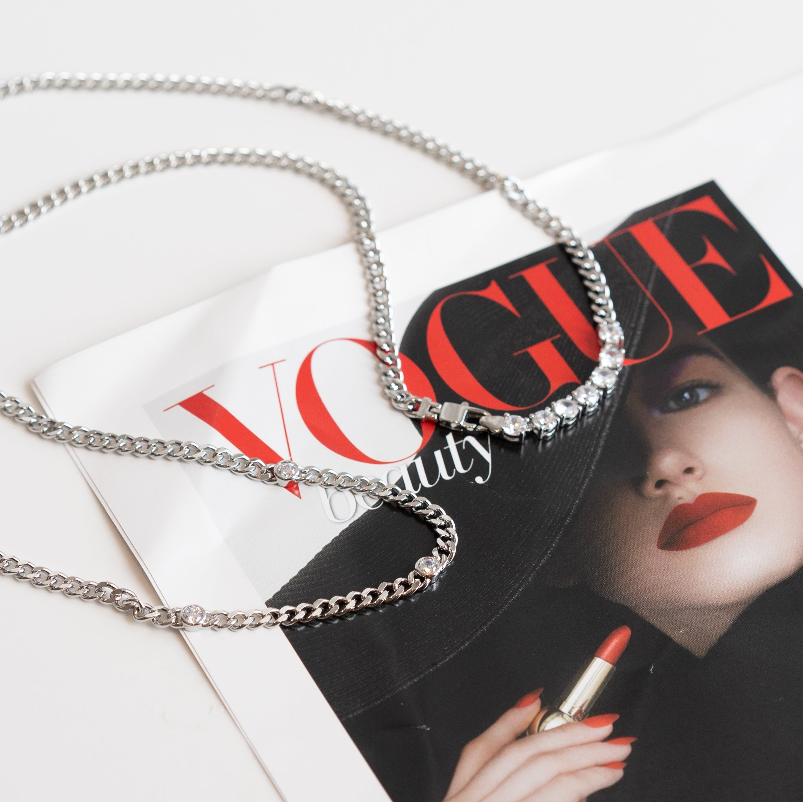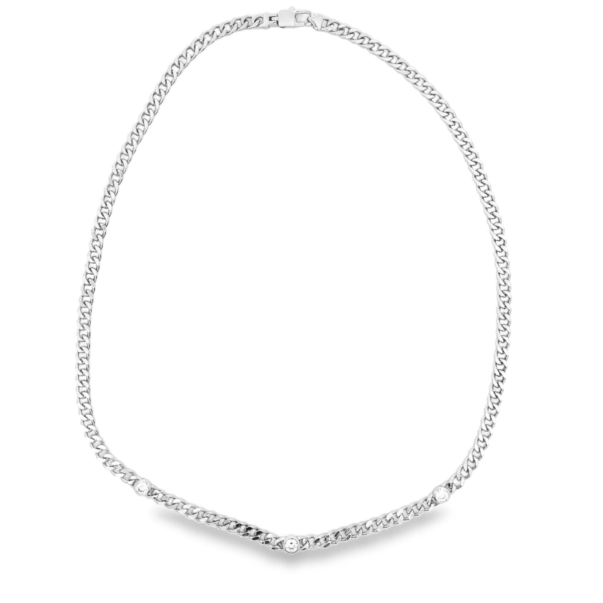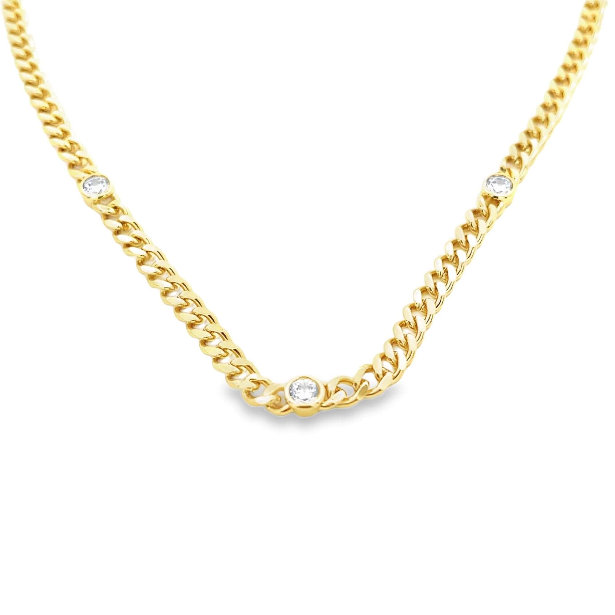 Thin Triple CZ Gemstone Cuban Link Necklace (H282/I428A)