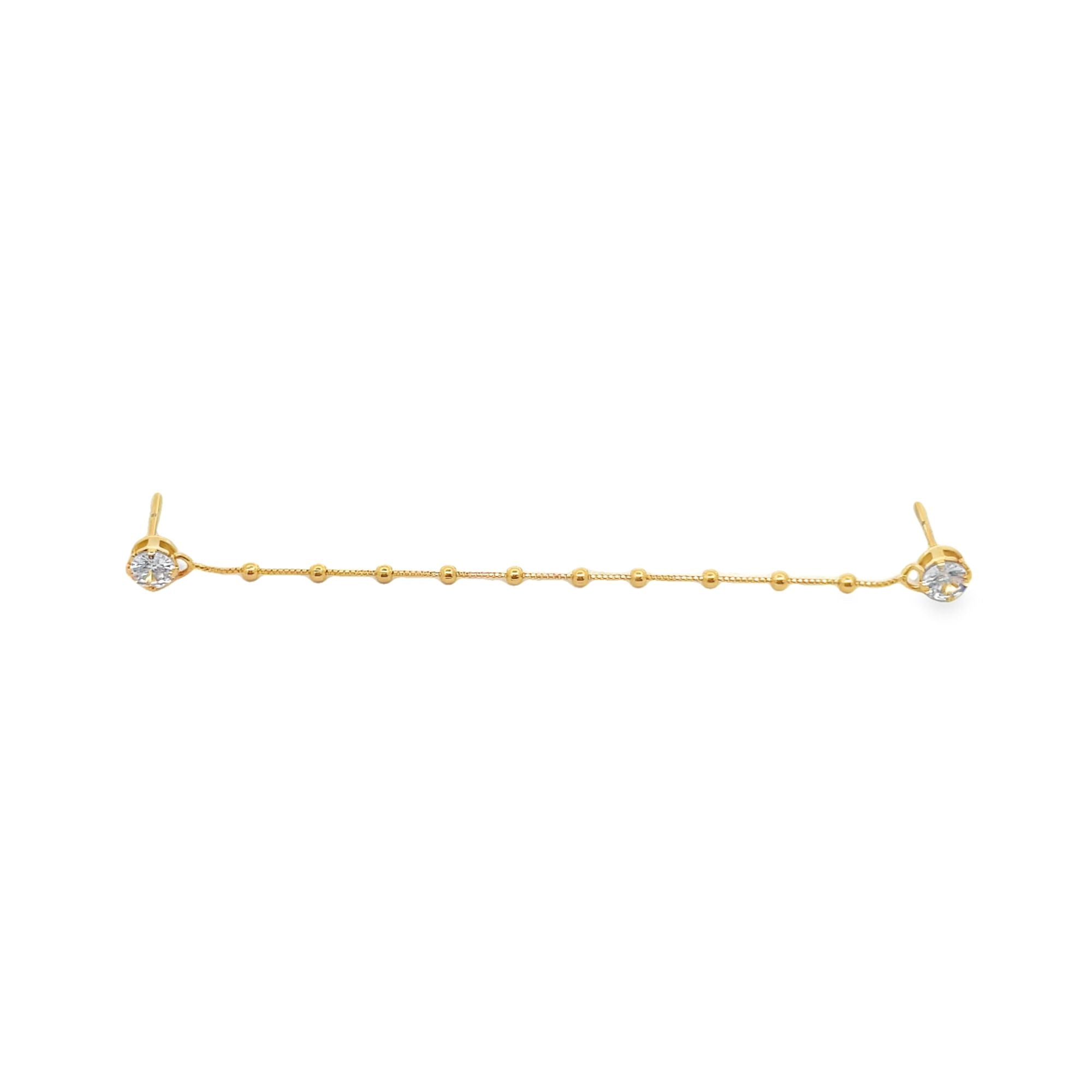 Wrap your ears in luxury with our Triple Chain Earrings. These elegant and exclusive earrings feature three delicate chains for a sophisticated touch. Perfect for any occasion, these earrings will elevate your look to new heights.