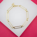 18K Gold Filled 5mm Long Rectangle Paper Clip Bracelet (I345)