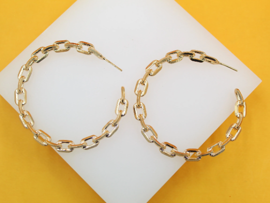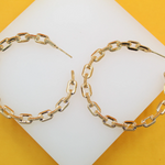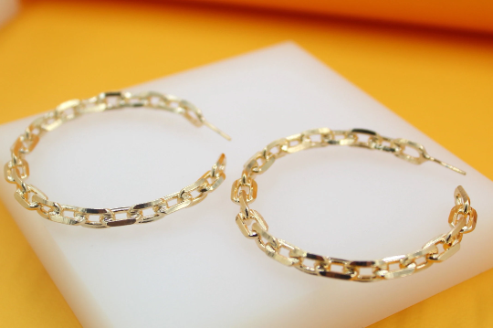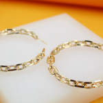 18K Gold Filled Dainty Paperclip Chain Open Hoop Earrings