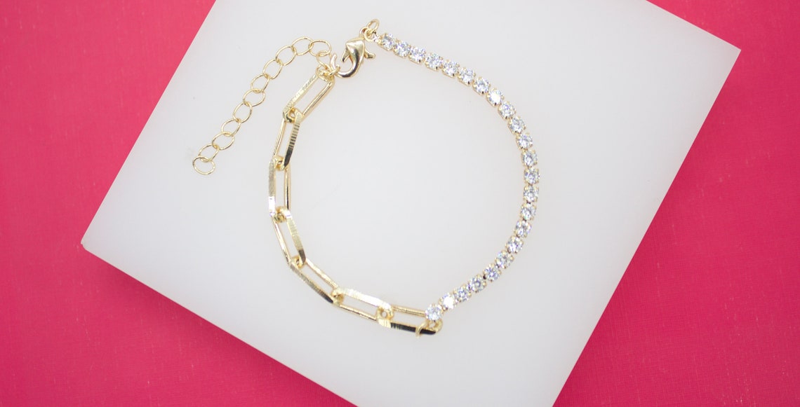 18K Gold Filled Designed 5mm Paper Clip With CZ Stones Bracelet (I4)