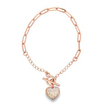 Paper Clip Chain Bracelet With A Heart Clear Micro CZ Stones (I126)