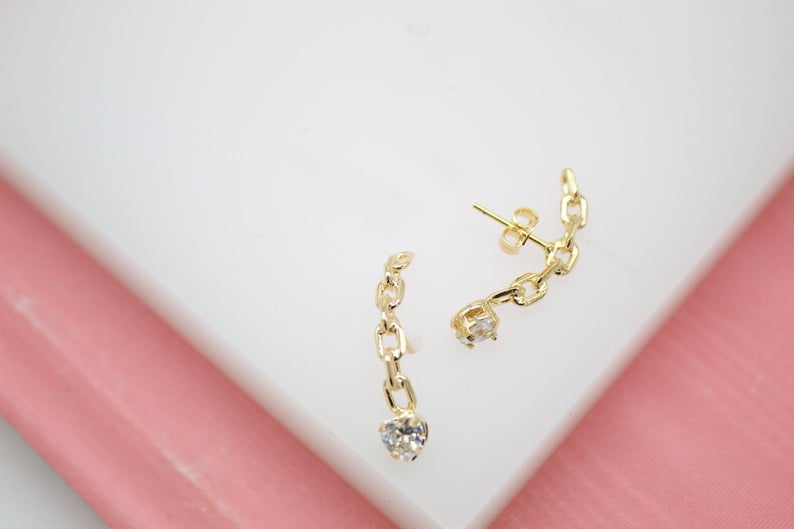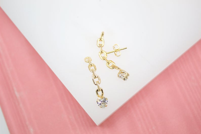 18K Gold Filled Paper Clip Chain Stud Dangle Earrings