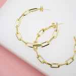 18K Gold Filled Paper Clip Link Hoops Stud Earrings(K171)