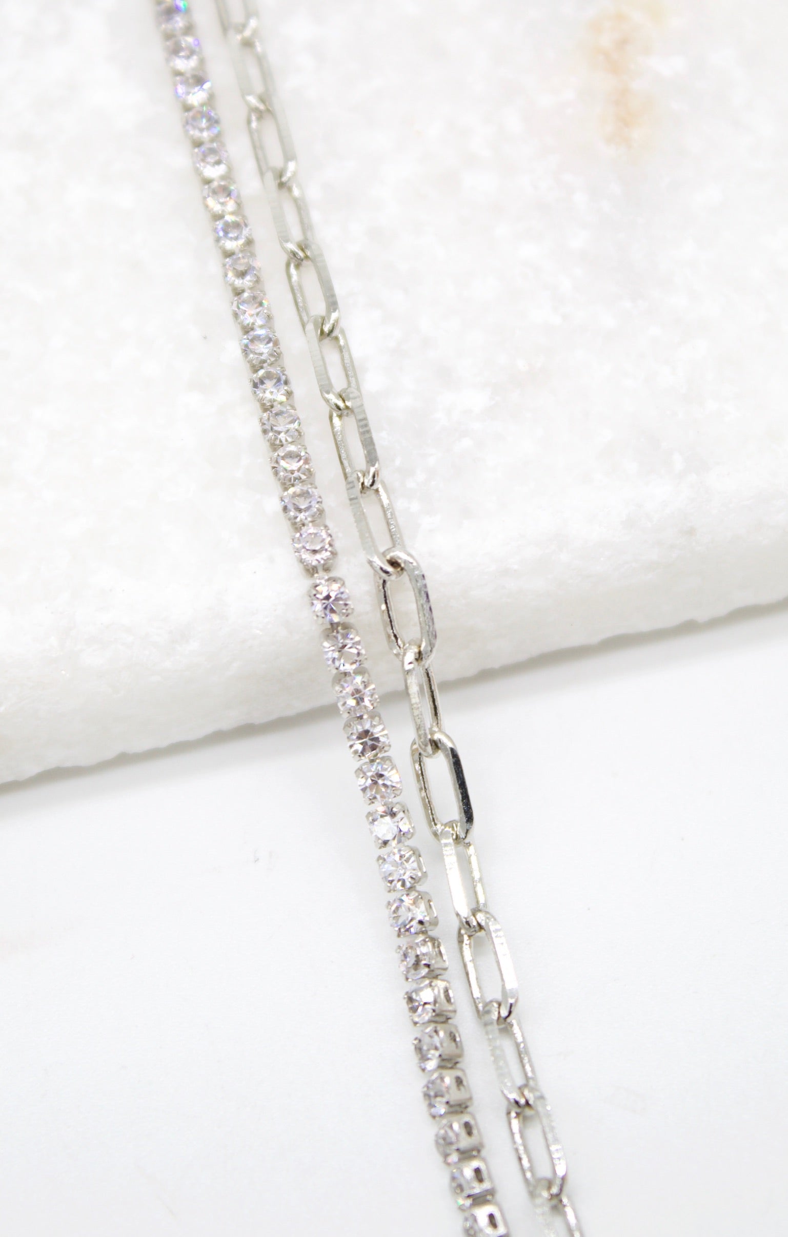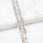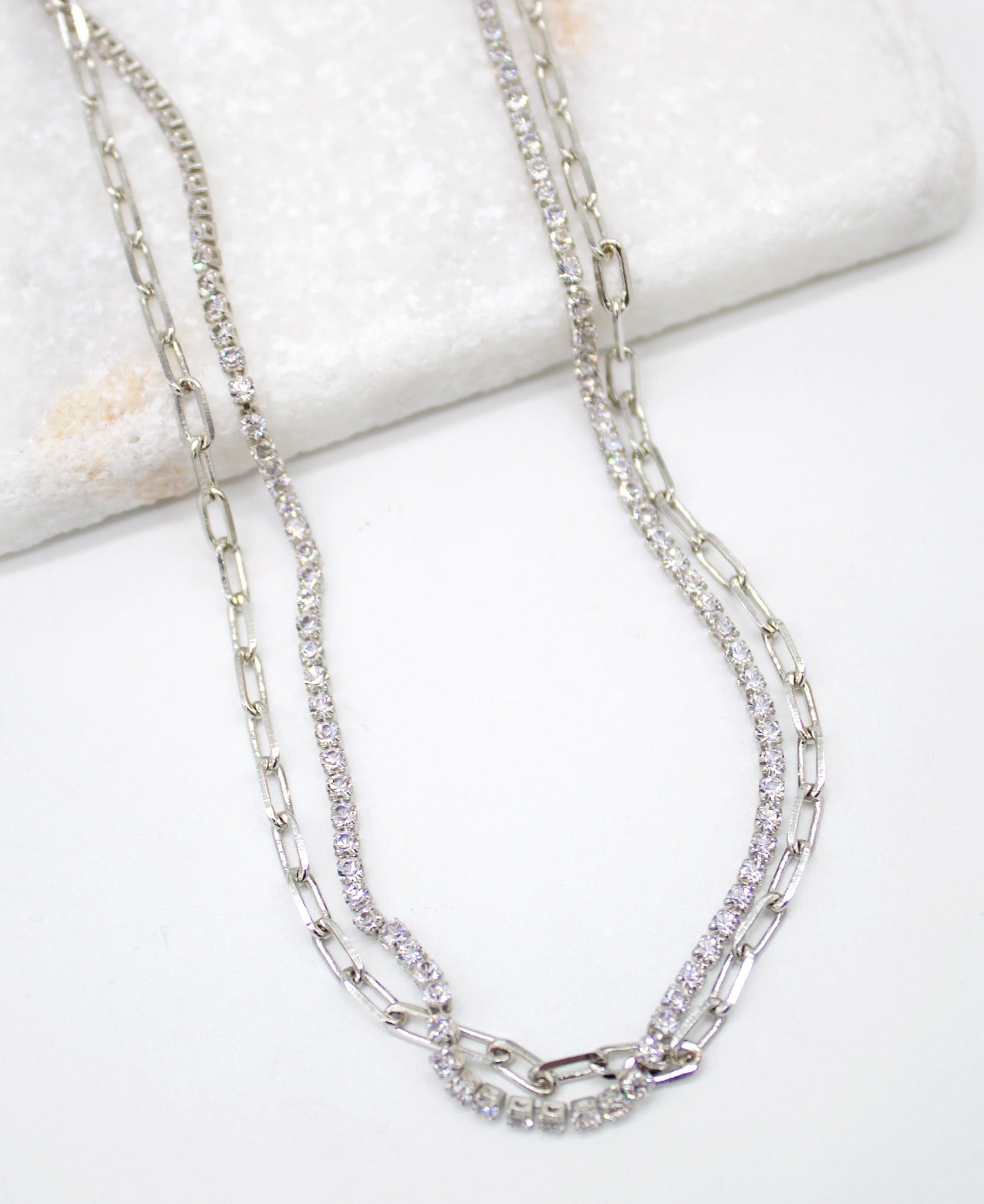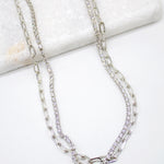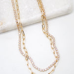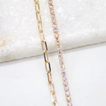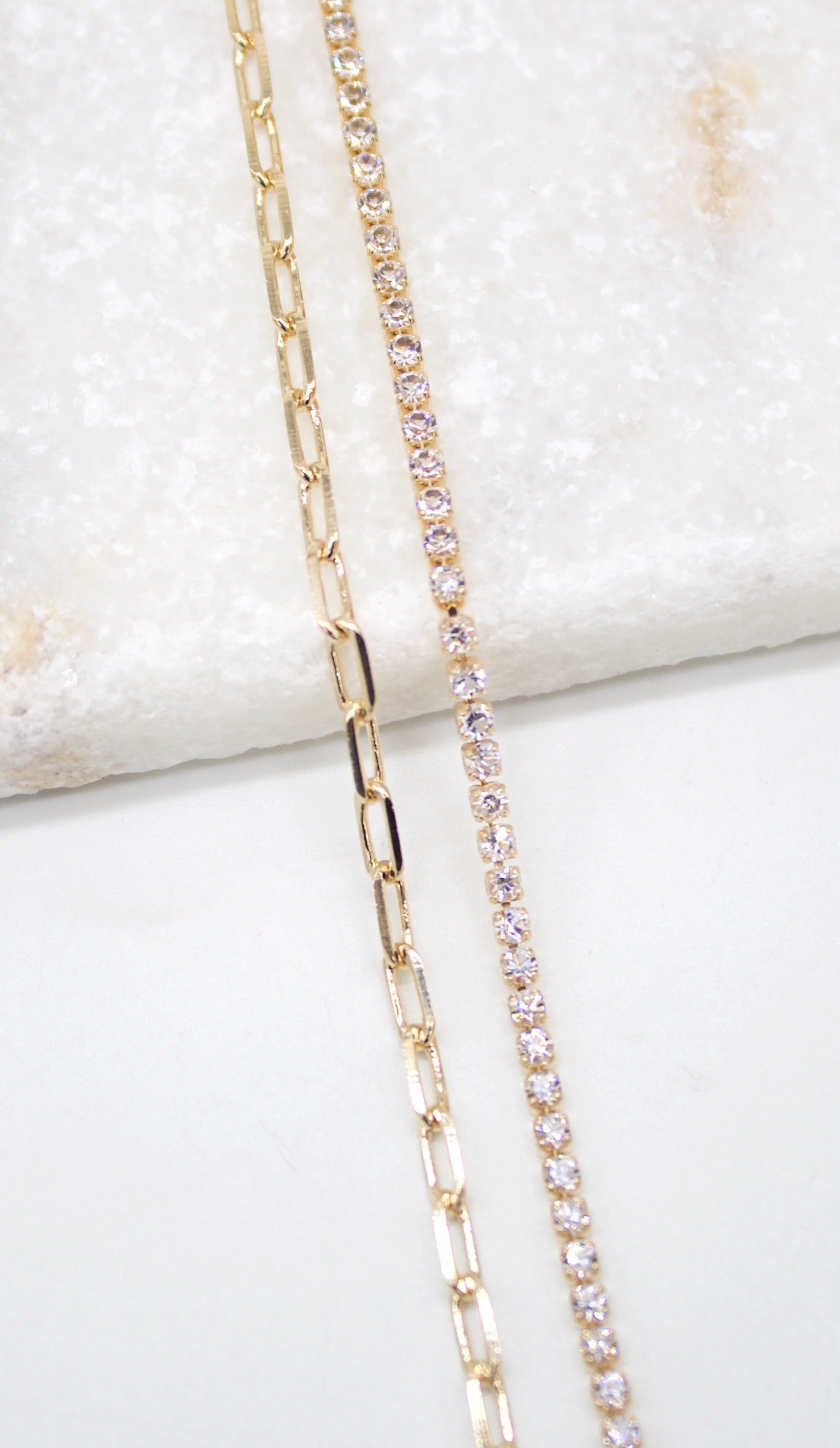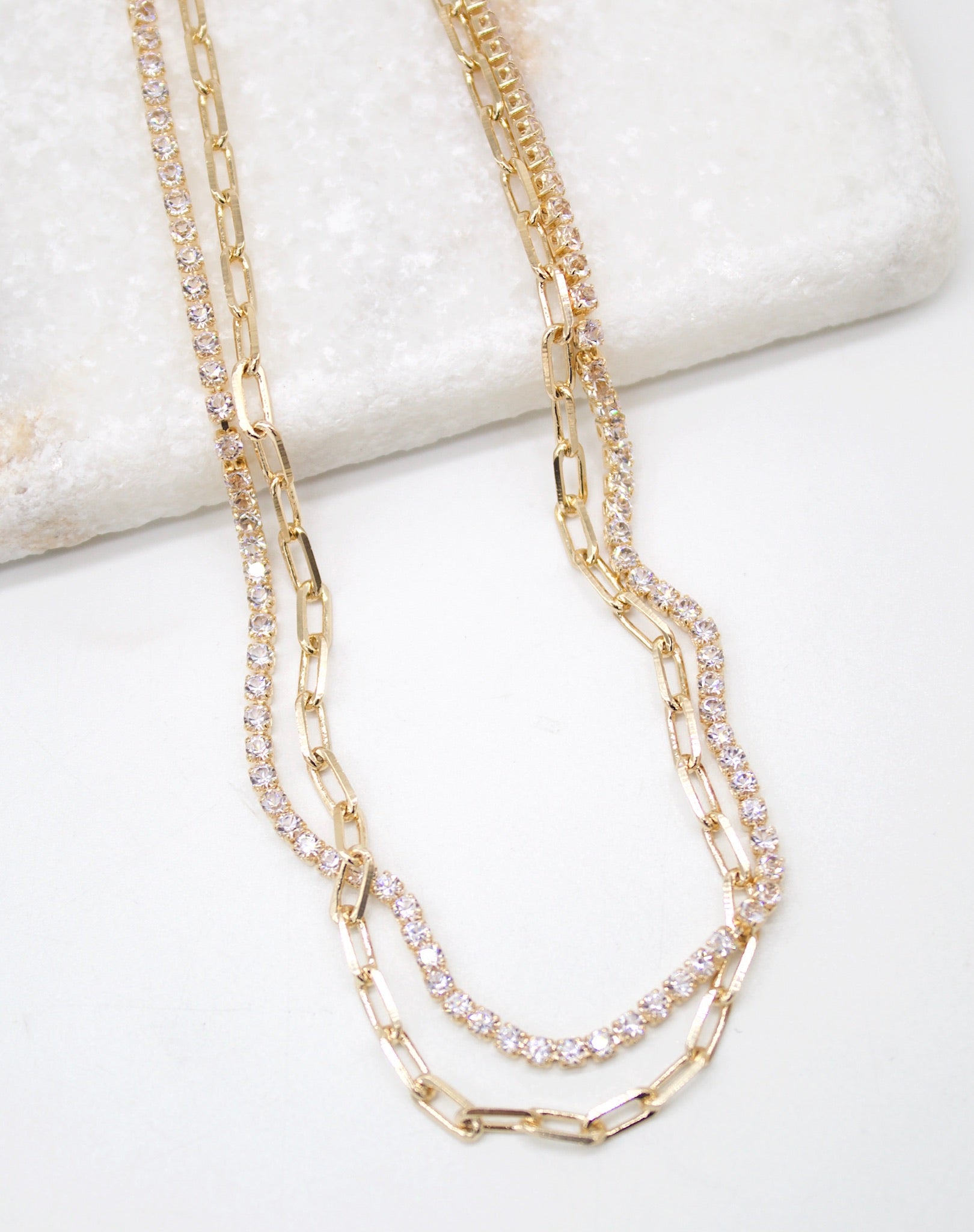 18K Gold Filled Layered Clear Round CZ Stones With Paper Clip Chain Necklace (H3)