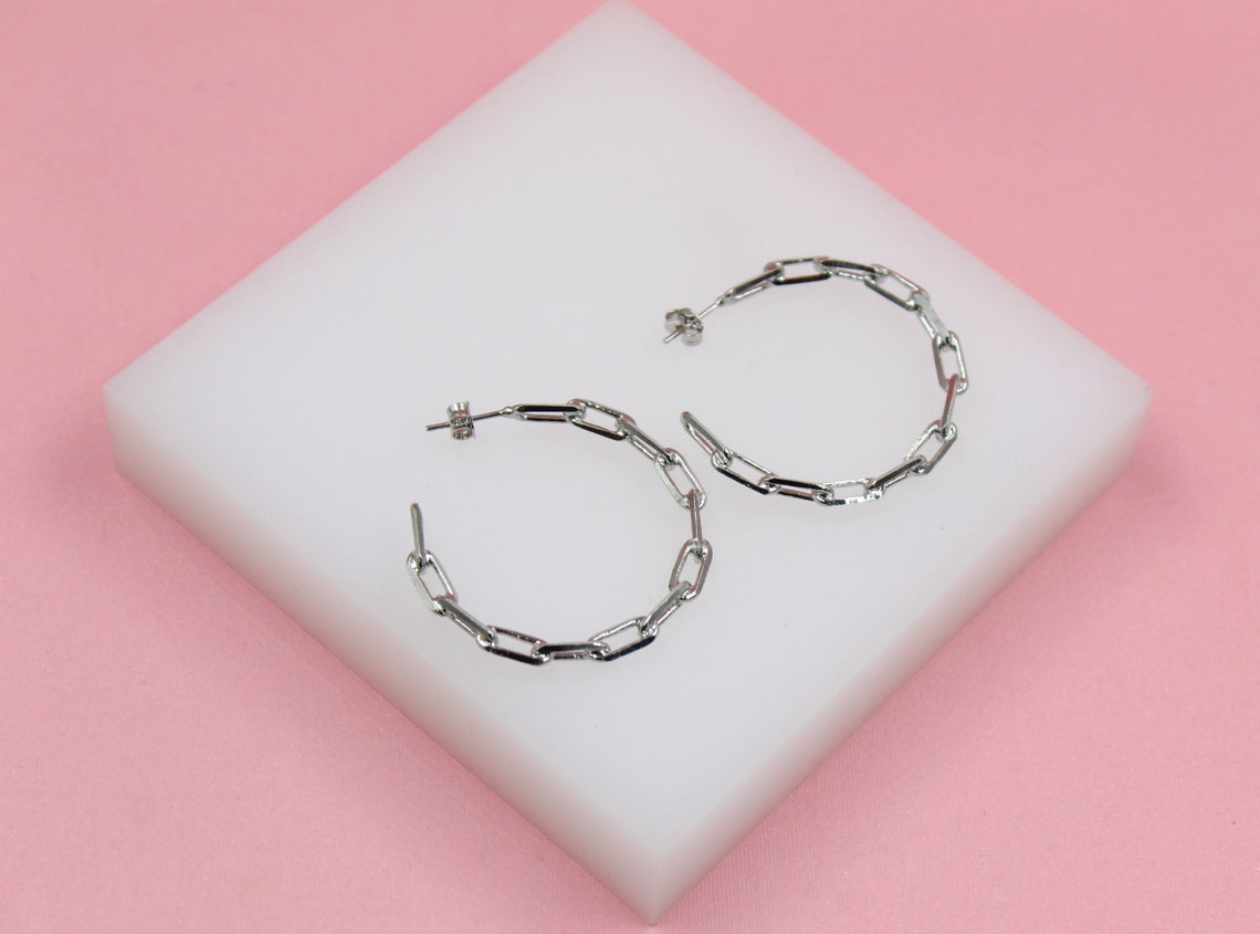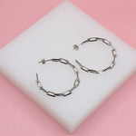 18K Rhodium Filled Dainty 4mm Paper Clip LInk Open Hoop Earrings (K175)
