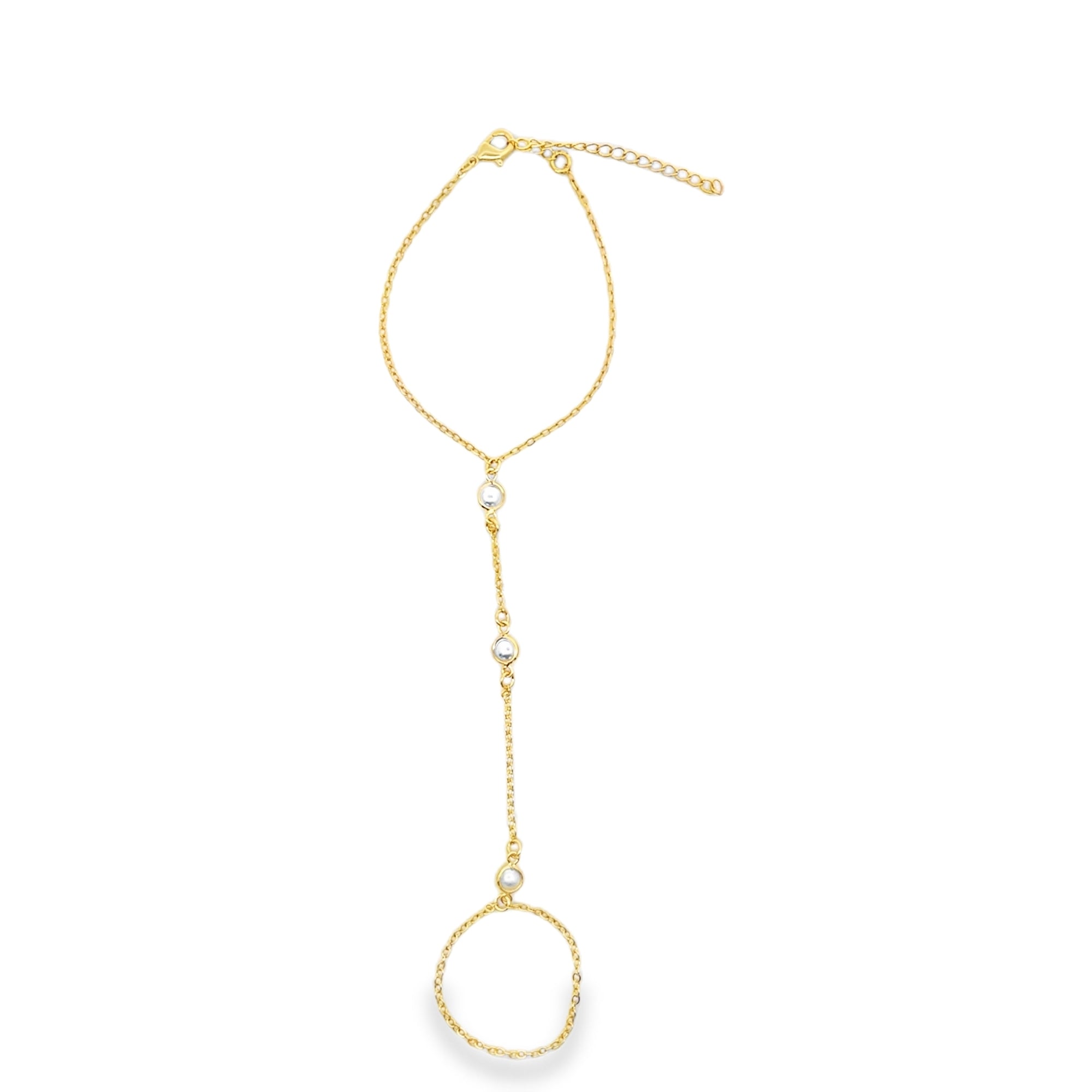 Round Pearl Charm Station Hand Chain Bracelet (I111)