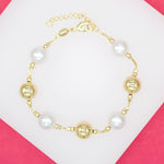 10mm Pearl Bead Box Chain Bracelet (I106)