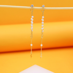 Add a touch of elegance to your jewelry collection with these stunning dangle earrings. Crafted from 18K Gold Filled material, they feature beautiful pearls and a graceful 82mm drop length. Perfect for special occasions or elevating everyday outfits. Available in bulk orders.