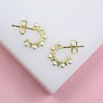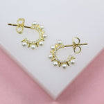 18K Gold Filled Spike Pearl Open Hoops (K269)