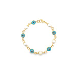 Synthetic Pearl Bead Evil Eye Charm Bracelet (I126A)
