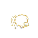 CZ Evil Eye Hollow Circle Shape Fresh Water Pearl Adjustable Beaded Protection Bracelet