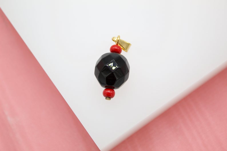 18K Gold Filled Azabache Pendant (A168)
