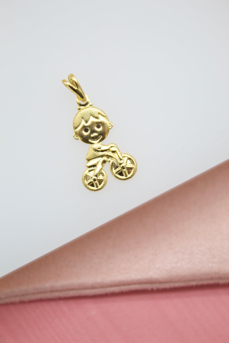18K Gold Filled Girl Riding Bike Charm Pendant