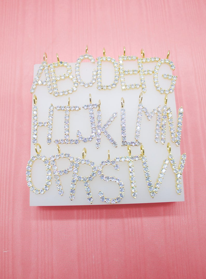 18K Gold Filled Capital Initials Name With CZ Cubic Zirconia Stones Pendant (A15)