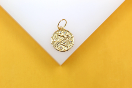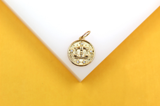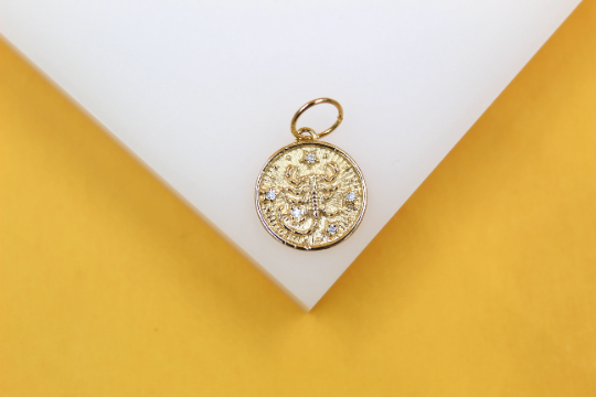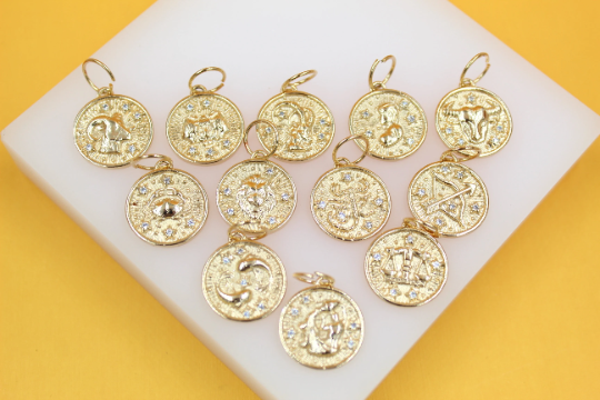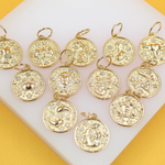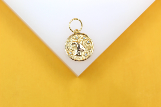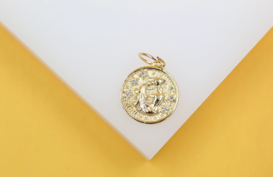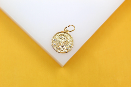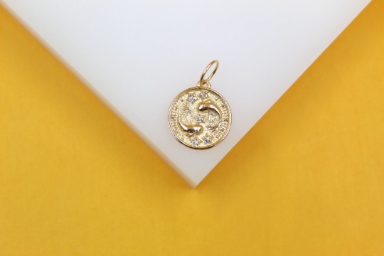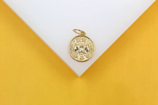 18K Gold Filled Coin Disc Medallion Zodiac Horoscope Charm Pendant