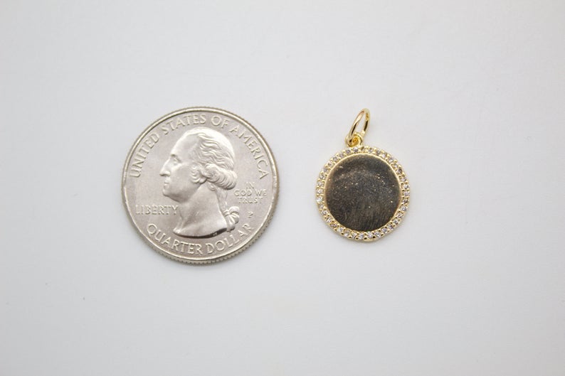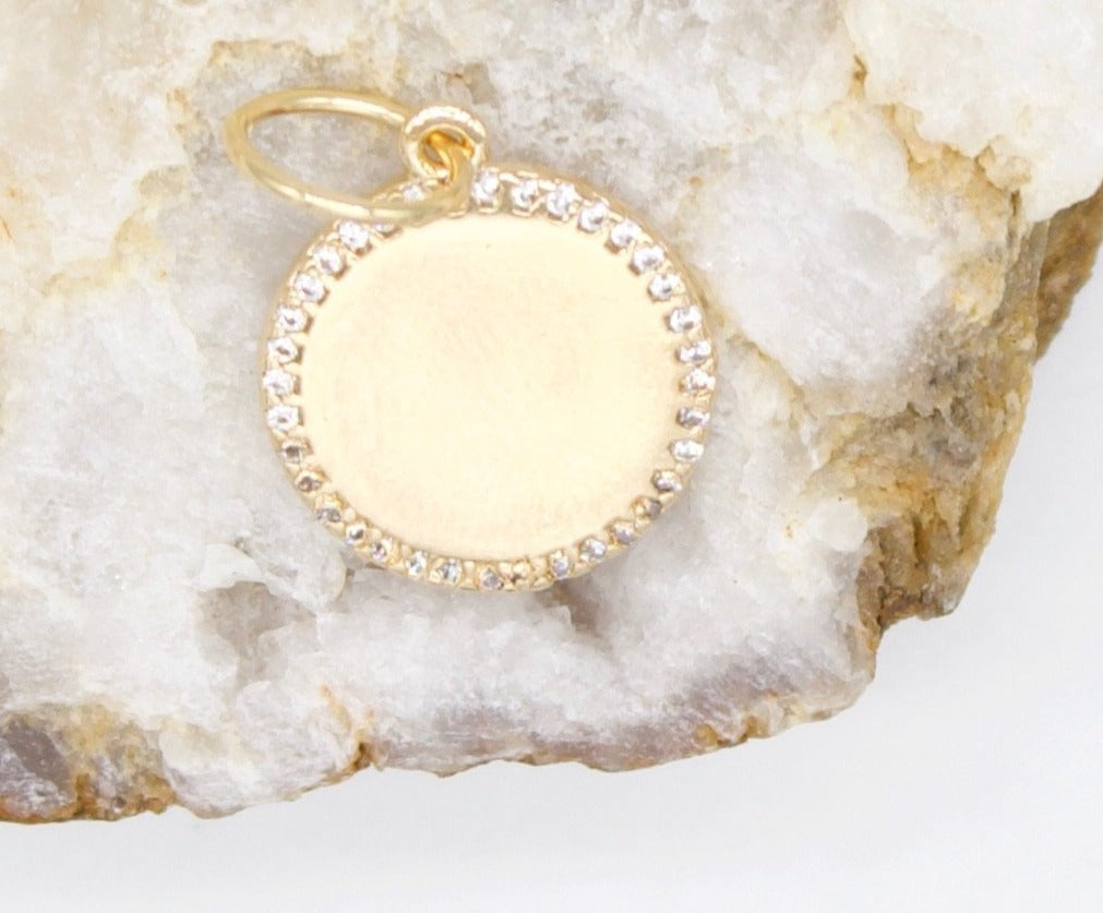 18K Gold Filled Coin Medallion With CZ Stones (A49)