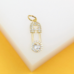 18K Gold Filled CZ Safety Pin Pendant Charm