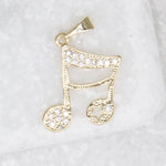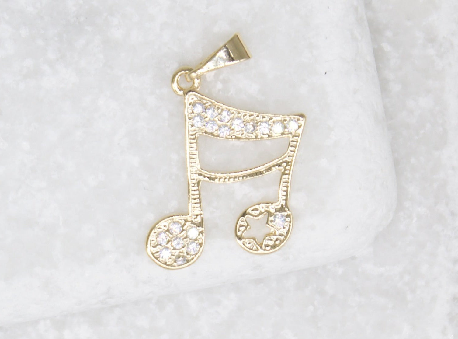 18K Gold Filled CZ Stone Double Bar Note Pendant, Music Note, Music Symbol, Jewelry Making Music Note Charm