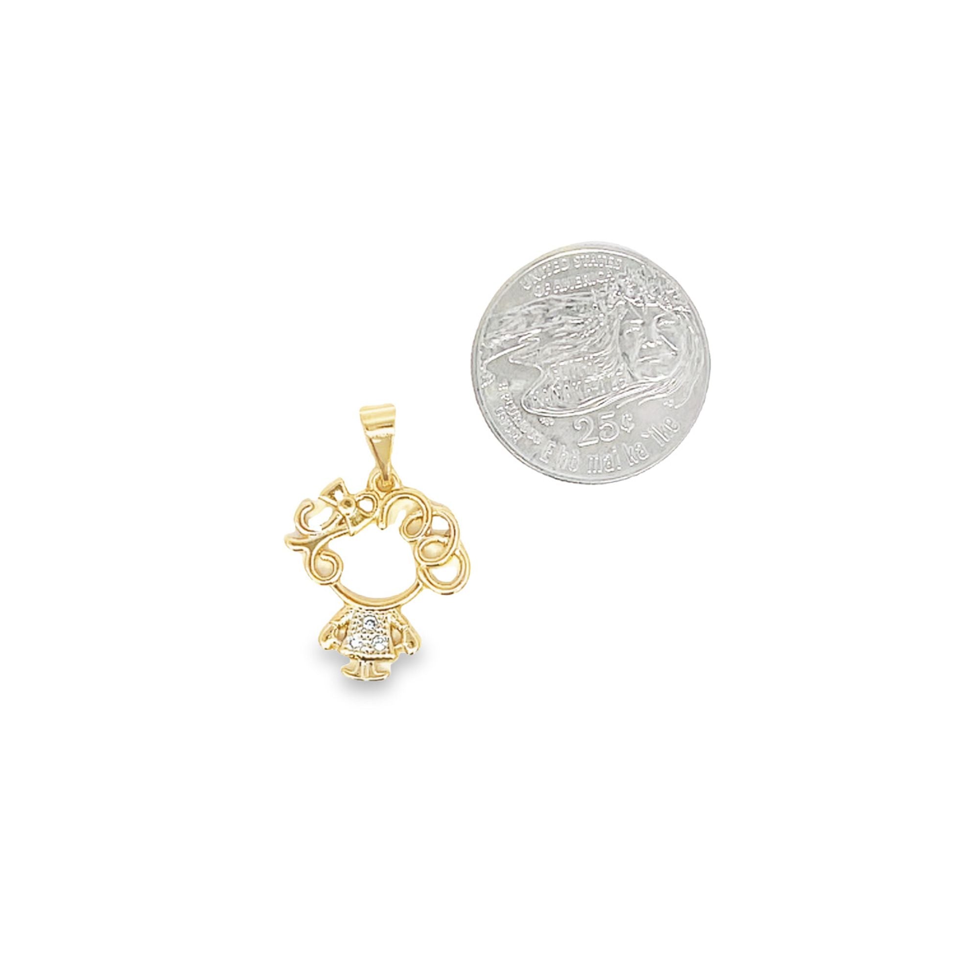 18K Gold Filled CZ Stone Girl Pendant Charm (A118)