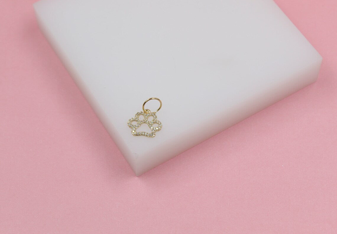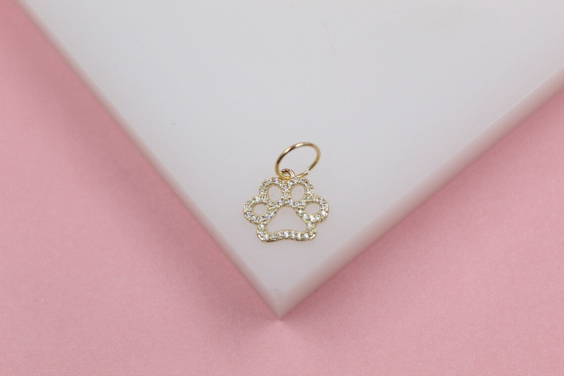 18k Gold Filled Dog Paw Pendant With Zirconia Stones