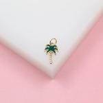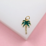 18K Gold Filled Enamel Green Palm Tree Pendant Charm