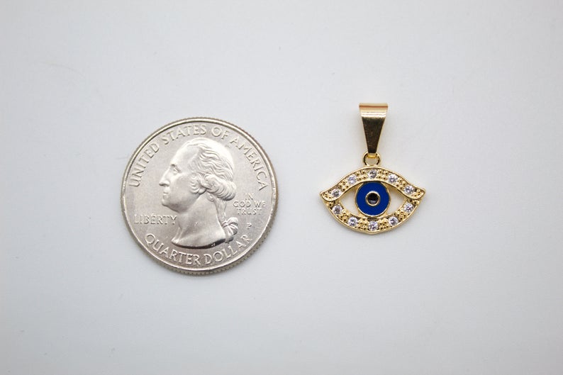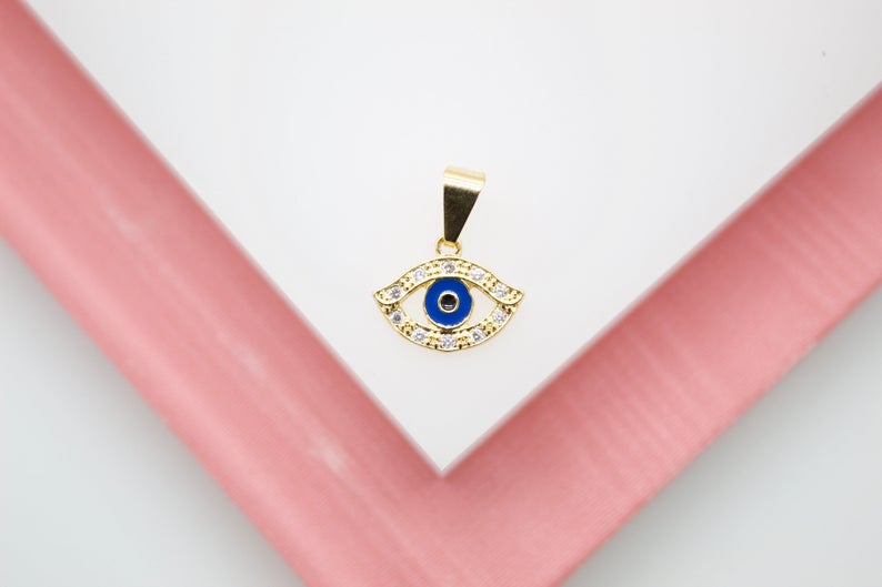 18K Gold Filled Evil Eye With CZ Stones Delicate Pendant
