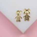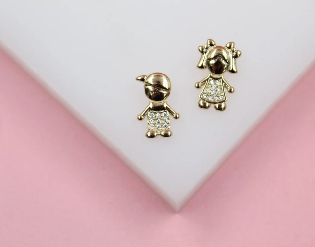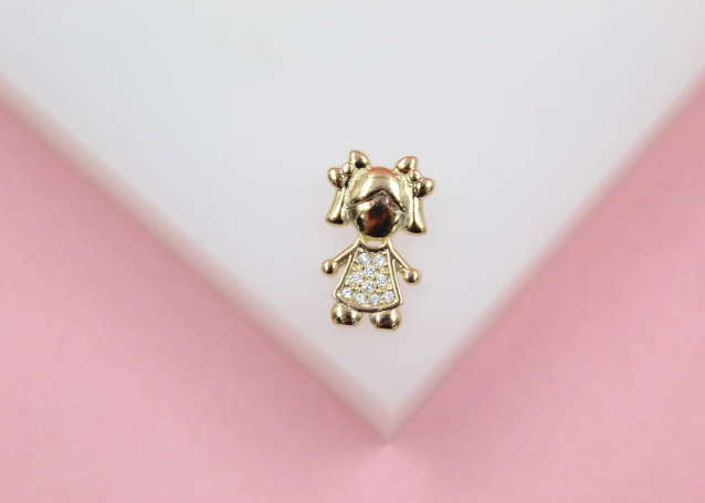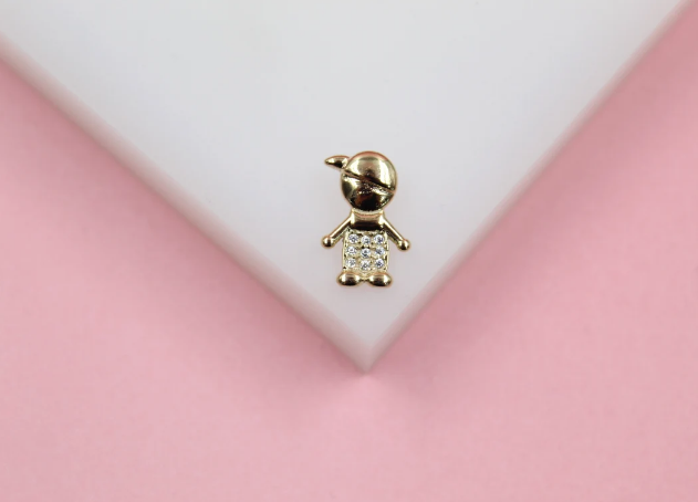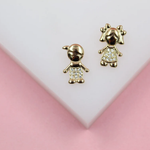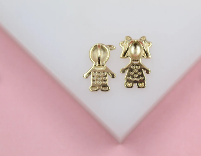 18K Gold Filled Girl & Boy Pendant Charms With Clear Zirconia Stones (A214)