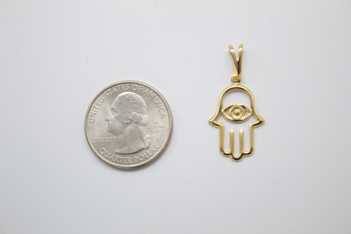 18K Gold Filled Hamsa Hand Evil Eye Lucky Good Luck Health Wealth Wish Necklace Charm Findings