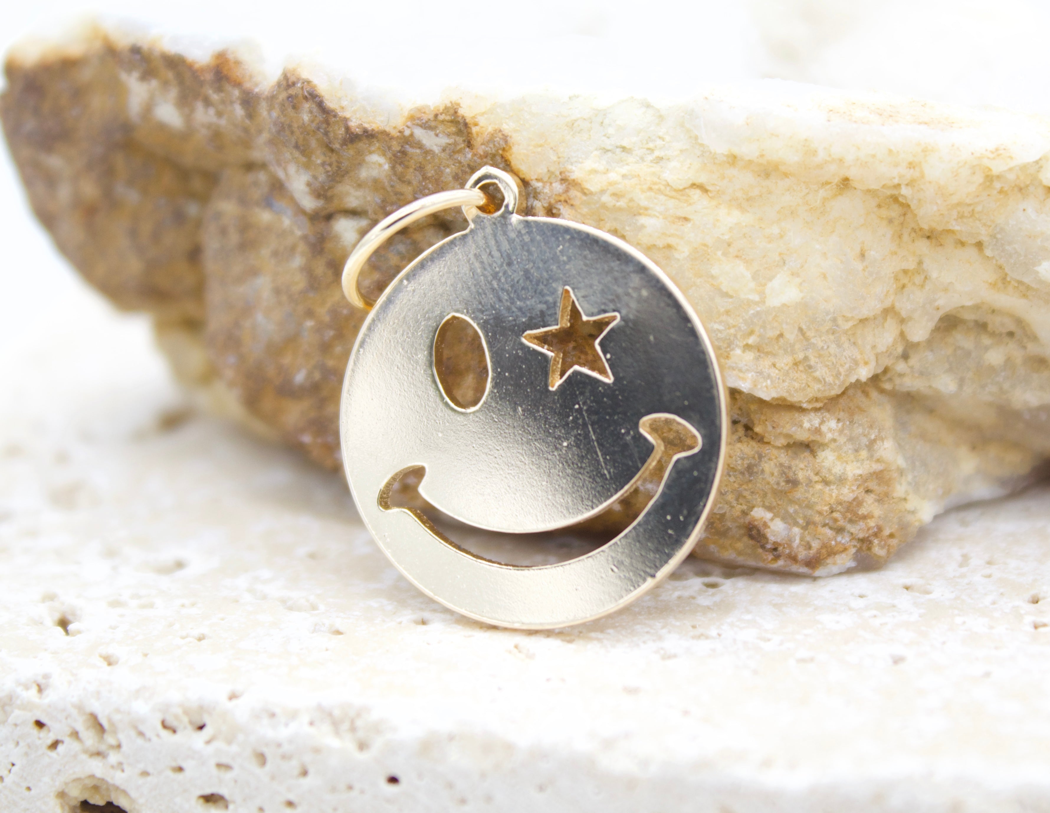18K Gold Filled Happy Smile Wink Star Face Charm Pendant (A57)