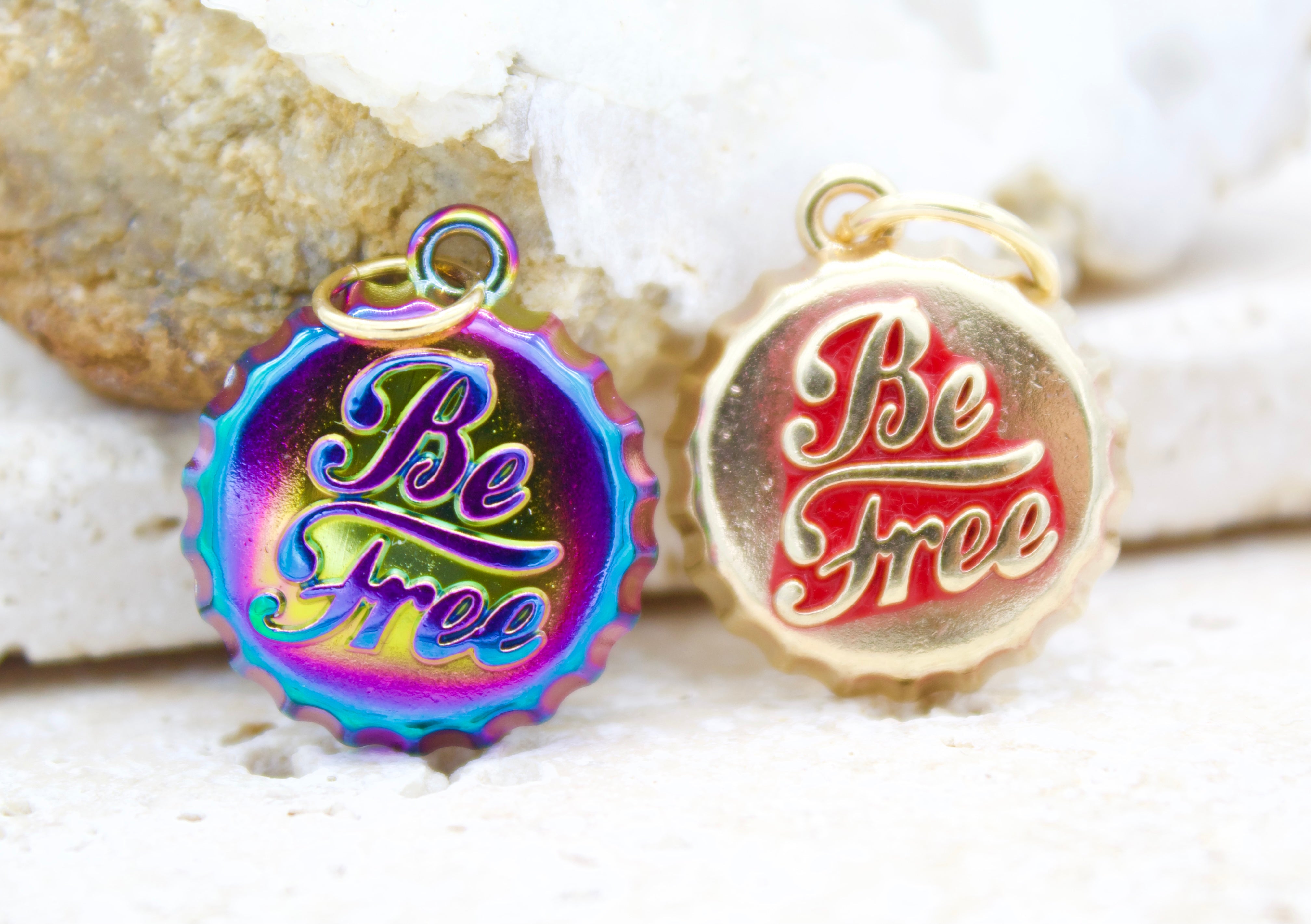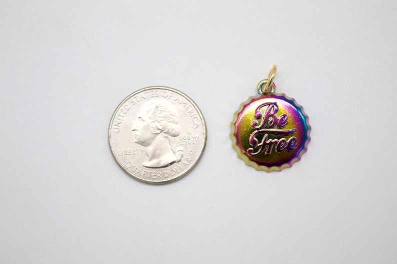 18K Gold Filled holographic iridescent Soda Cap Pendant (A45)