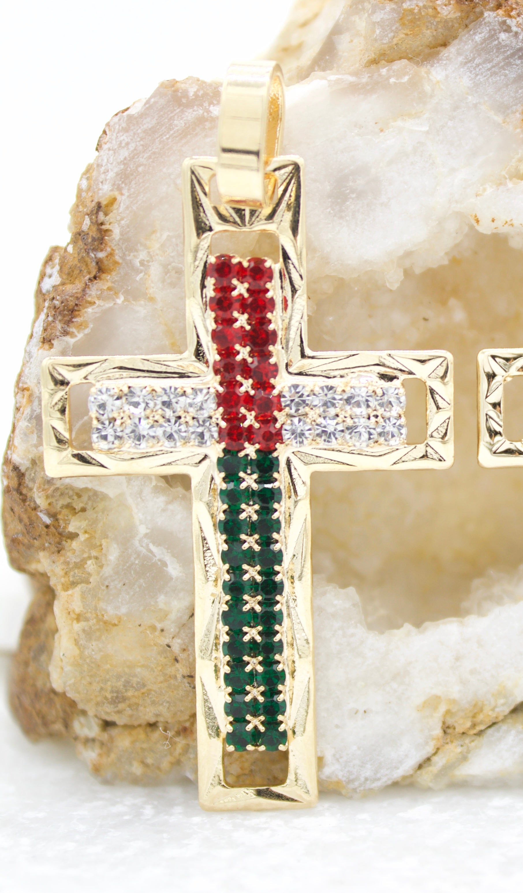 Enhance your collection with our Gold Filled Latin Cross Pendant featuring colorful CZ stones.