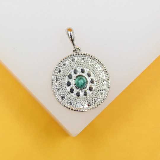 18K Gold Filled Jadeite North Star Medallion Disc Pendant