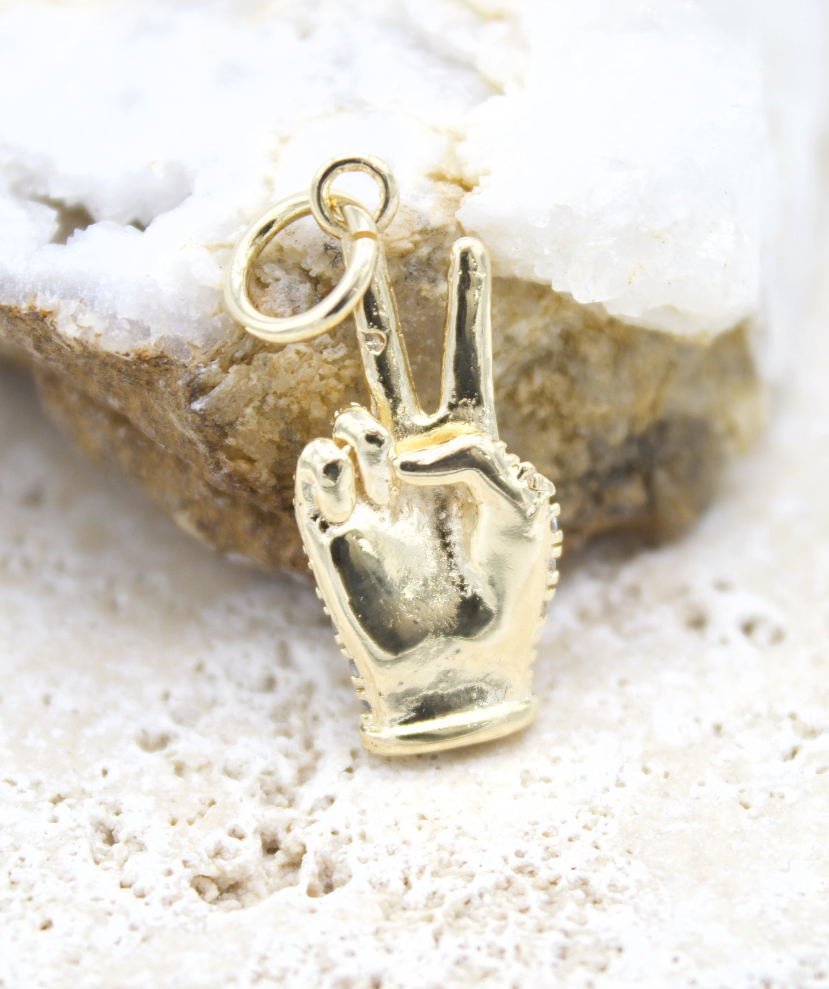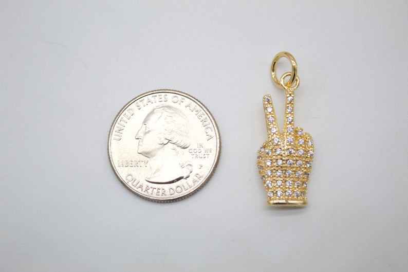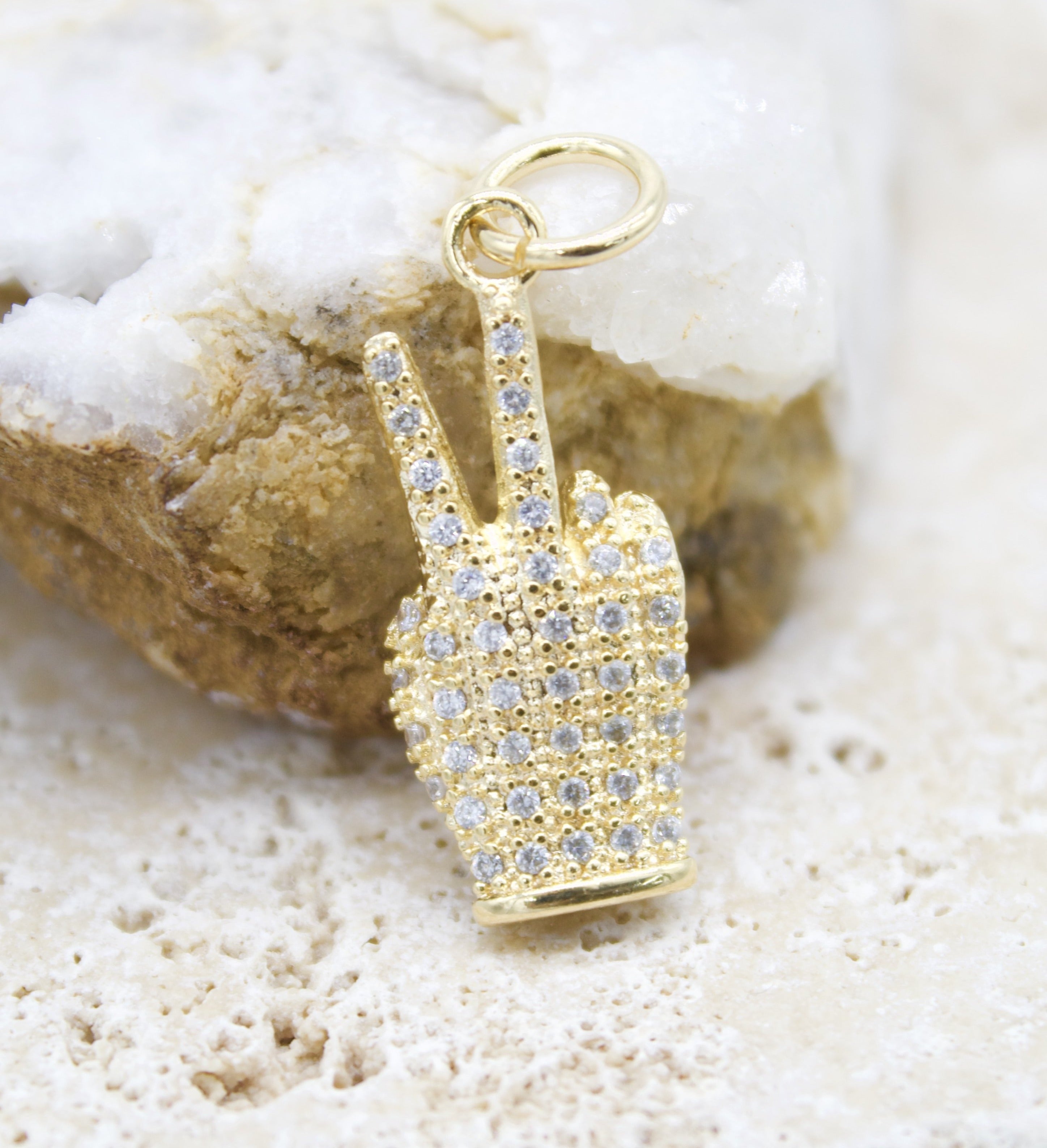 18k Gold Filled Peace Hand Sign With CZ Cubic Zirconia Stones