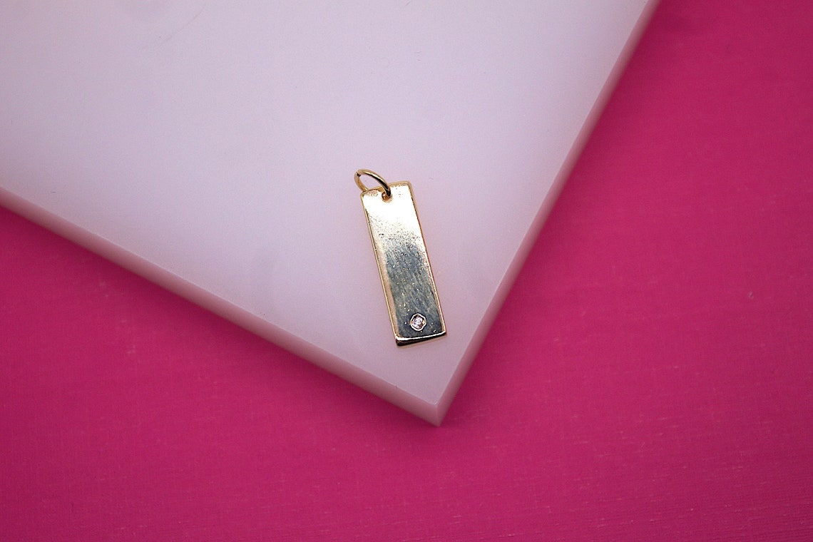 18K Gold Filled Rectangle Plate Charm With CZ Stone (A56)